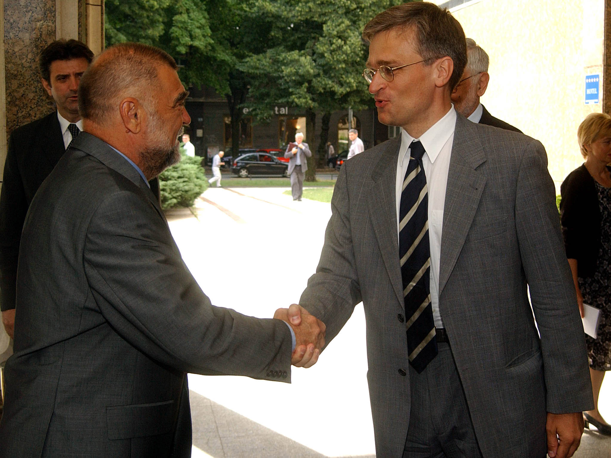 OSCE Mission Head Peter Semneby (right), here at an archive photo with President Stjepan Mesic, congratulated Croatia for receiving an EU candidate status.