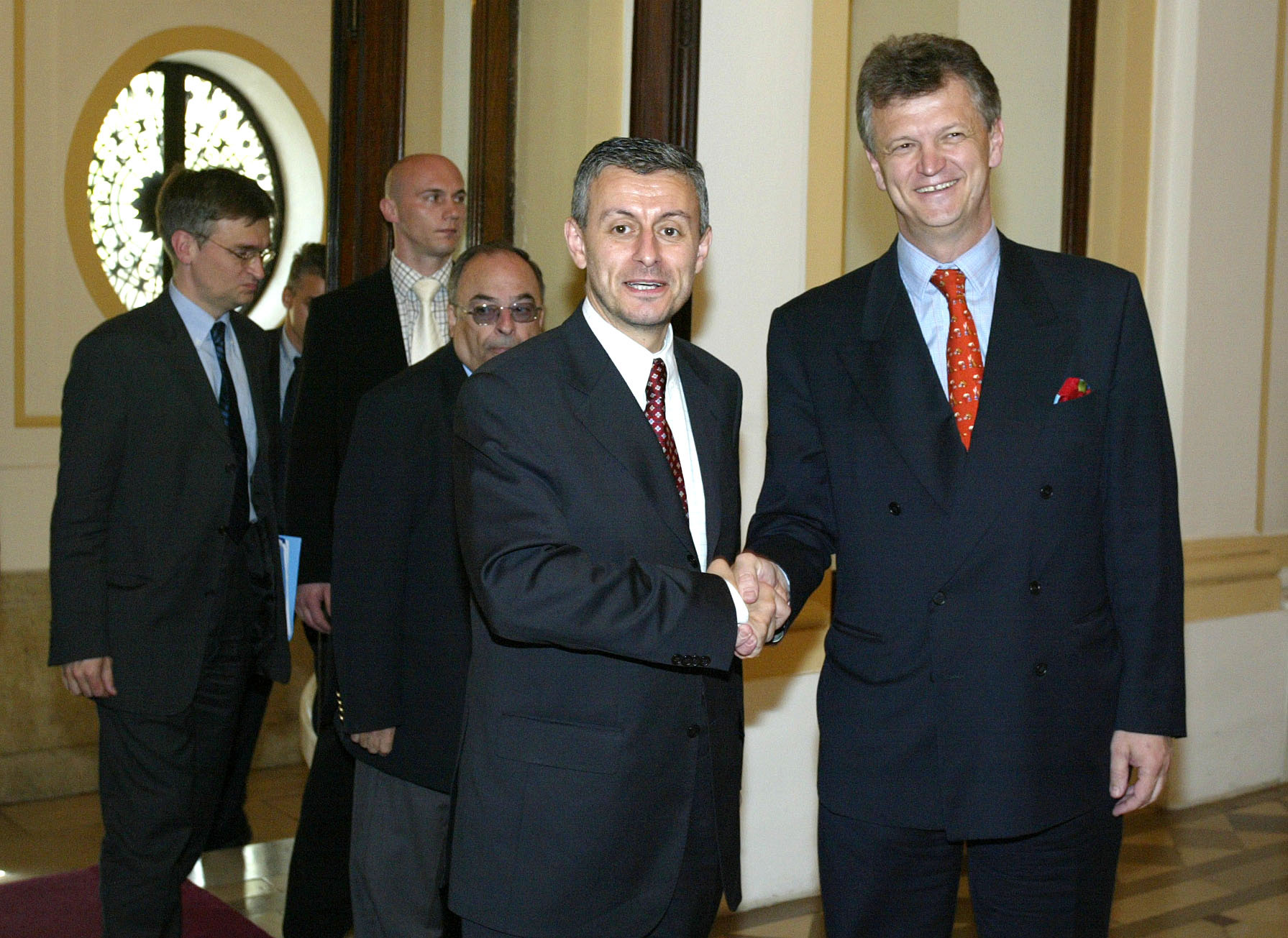 OSCE Chairman-in-Office Solomon Passy (left) met Croatian Foreign Minister Miomir Zuzul in Zagreb, 10 May 2004.