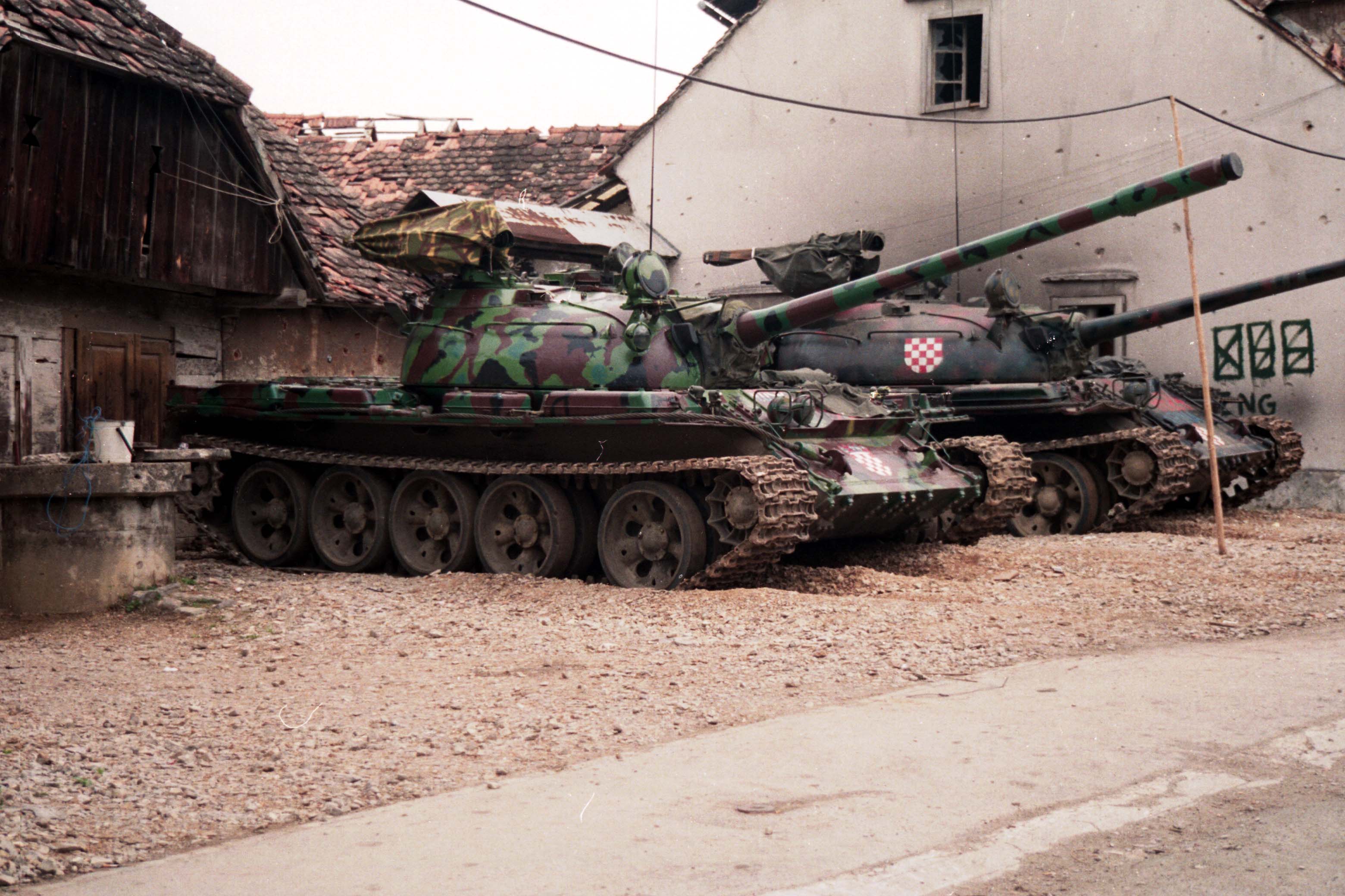 Croatian T-55 MBTs were taken at Turanj, just south of Karlovac in Croatia in April 1992. The ceasefire-line between the Croatian and Krajina-Serbian forces were about 1 km away.