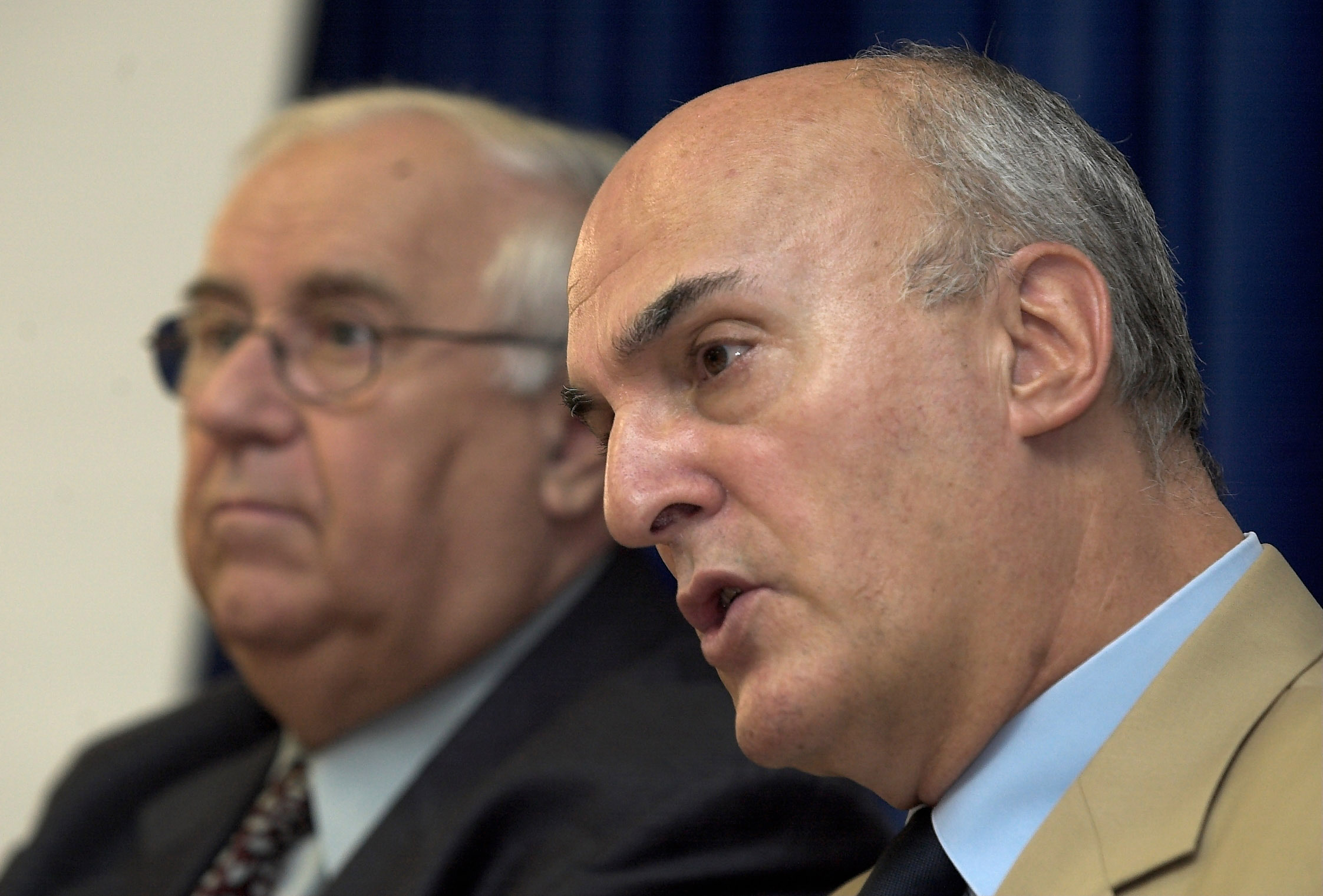 Culture Minister Bozo Biskupic (left) visited the OSCE Mission to Croatia to discuss the work of his ministry with Head of Mission Jorge Fuentes (right), 5 September 2005. He focused on improving media-related legislation.