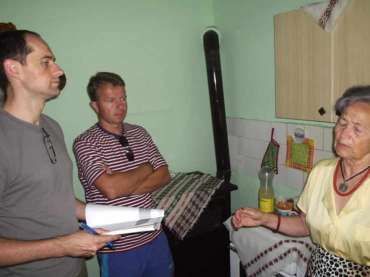 The Head of the OSCE Office in Zagreb's Housing Care Implementation Unit, Jan Repa (left) and Housing Care Officer Jasmin Mahmic visit elderly returnee Ana Djurisic in the eastern Slavonian town of Ilok, July 2008.