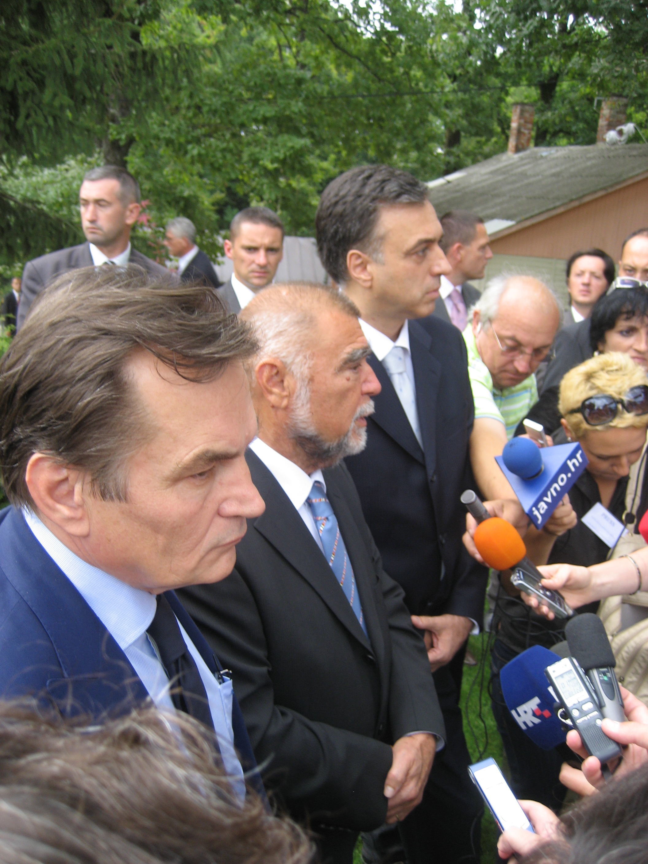 (L-R) Bosnia and Herzegovina Presidency Chairman Haris Silajdzic, Croatian President Stjepan Mesic and Montenegrin President Filip Vujanovic after signing a children's declaration on democratic guidelines for a better future, Orahovica, 30 August 2008.
